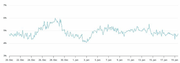 - 比特币期货溢价维持在5%附近,表明在98,000美元的突破尝试失败后,杠杆需求并未受到影响。