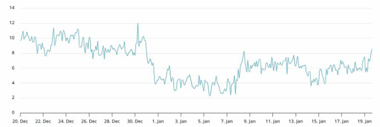 比特币网络每日活跃地址。来源:Nansen