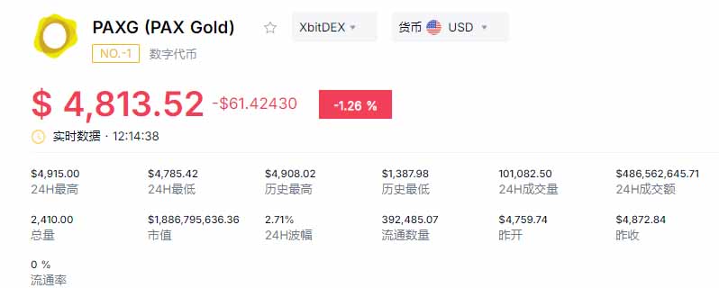 PAXG1月22日价格及市值概览,来源币界网