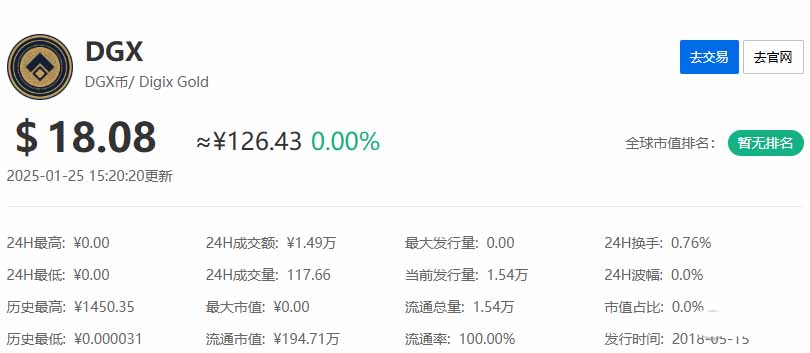 市值及定位:DGX(Digix Gold) 市值约5000万美元,定位为创新型小众代币。