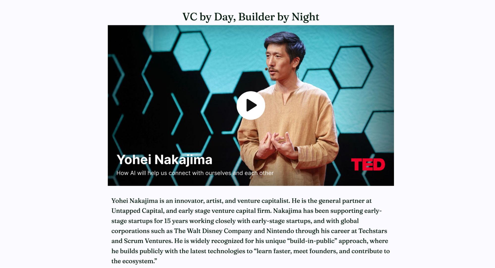 此外,Yohei Nakajima 还管理着一家风险投资基金,为多个项目提供技术支持和资源保障,推动着 AI 产业的发展。他的项目吸引了ai16z 创始人、Visa 加密业务负责人、Electric Capital 联合创始人等人的关注。