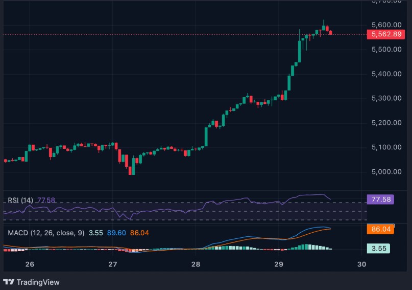 - 提升的RSI 和成交量表明强劲的动能,但短期整固风险仍然存在,因为价格正在消化获利。