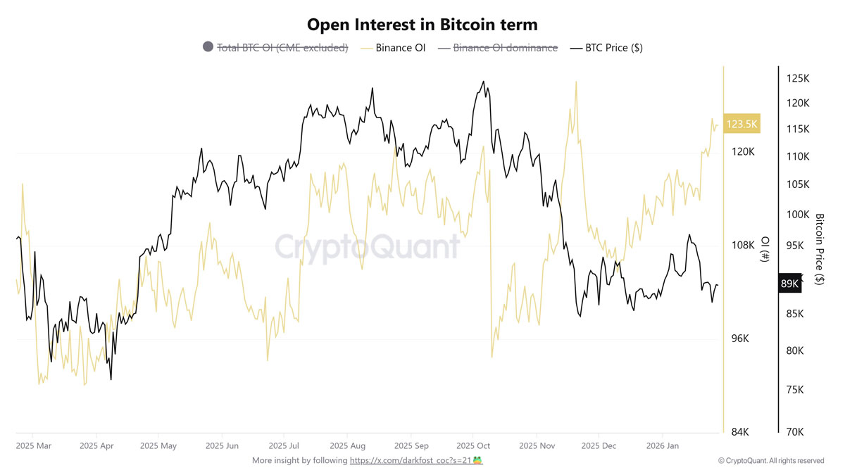 - 币安未平仓合约已较2025年10月的低点上涨超过30%,证实比特币期货市场活动正在升温。