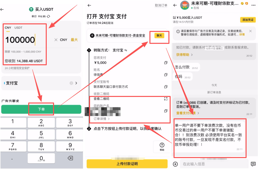 - 一定要走交易所的 P2P 平台不要私下转账,避免被骗。