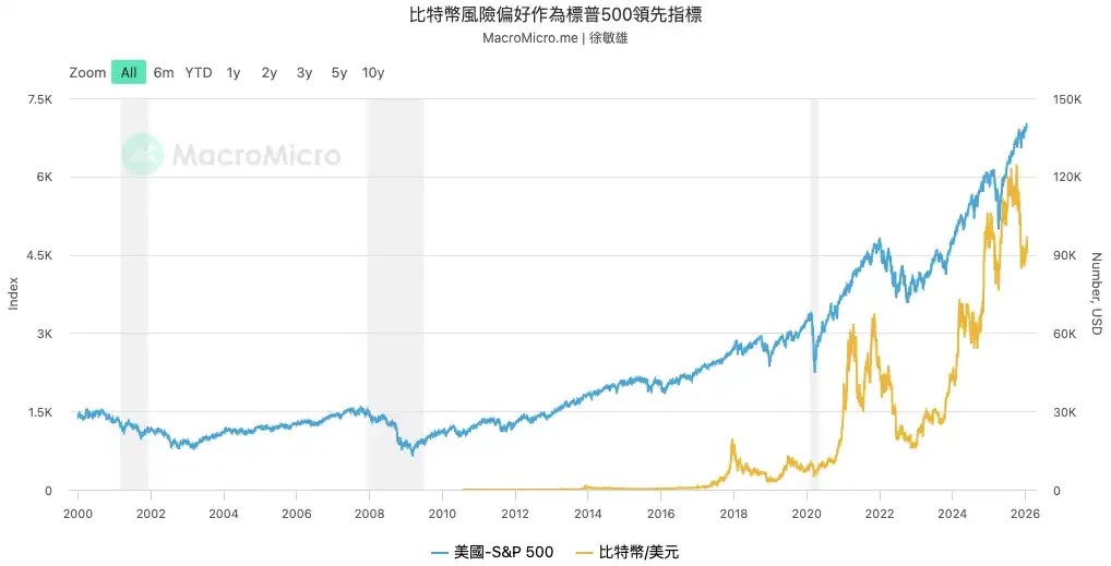 据 MacroMicro 的数据,比特币的价格的转折点在过去几年中多次领先于标普 500 指数。因此,一旦作为领先指标的比特币上涨势头停滞,无法再创新高,这就构成了一个强烈的警示信号,其他资产的上涨动能可能也已接近枯竭。