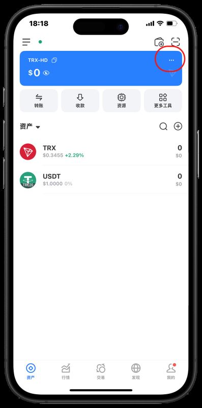 首先打开TokenPocket,将你的网络切换到TRON链,然后点击右上角的...。