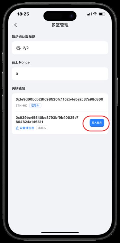 情景二:多签管理地址导入到钱包。