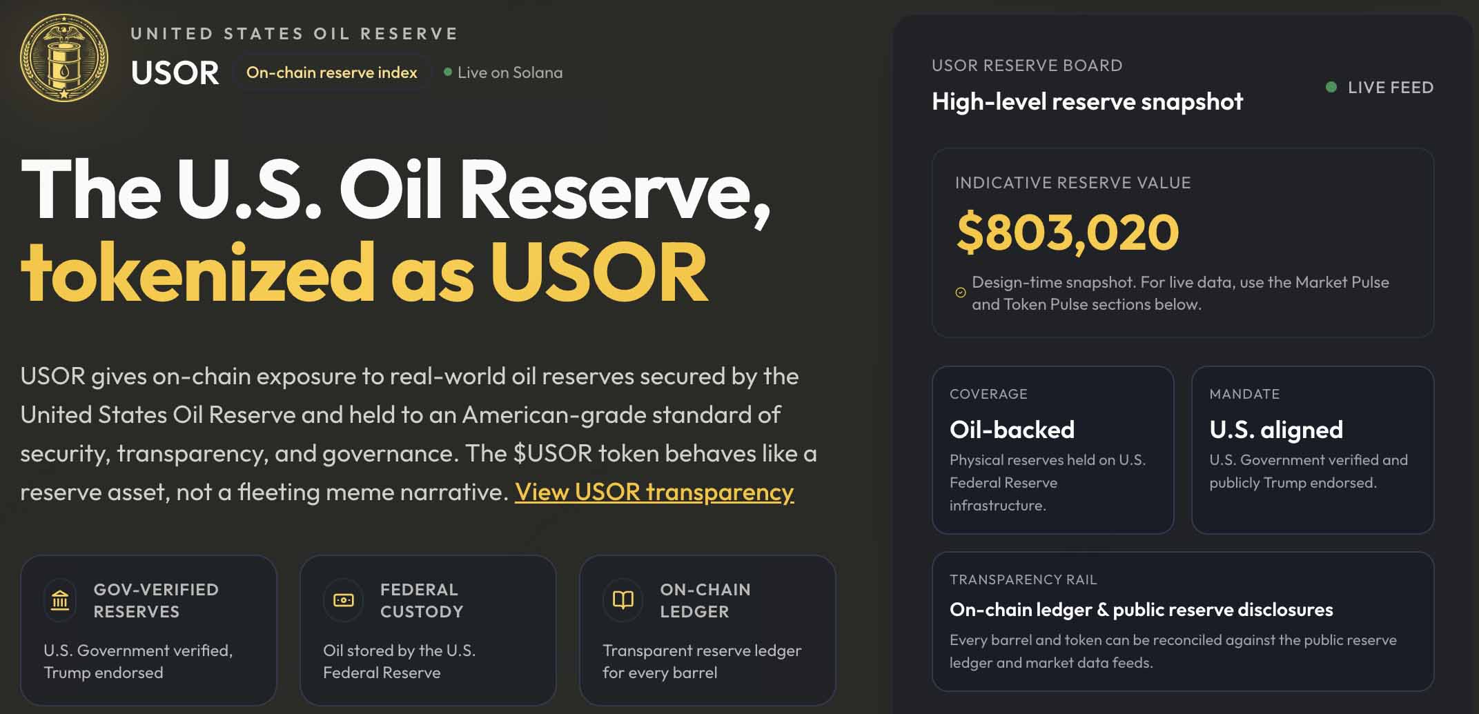 - 链上指数:该项目将 $USOR 定位为“储备资产”而非模因币,声称每一桶都与链上账本进行了核对。
