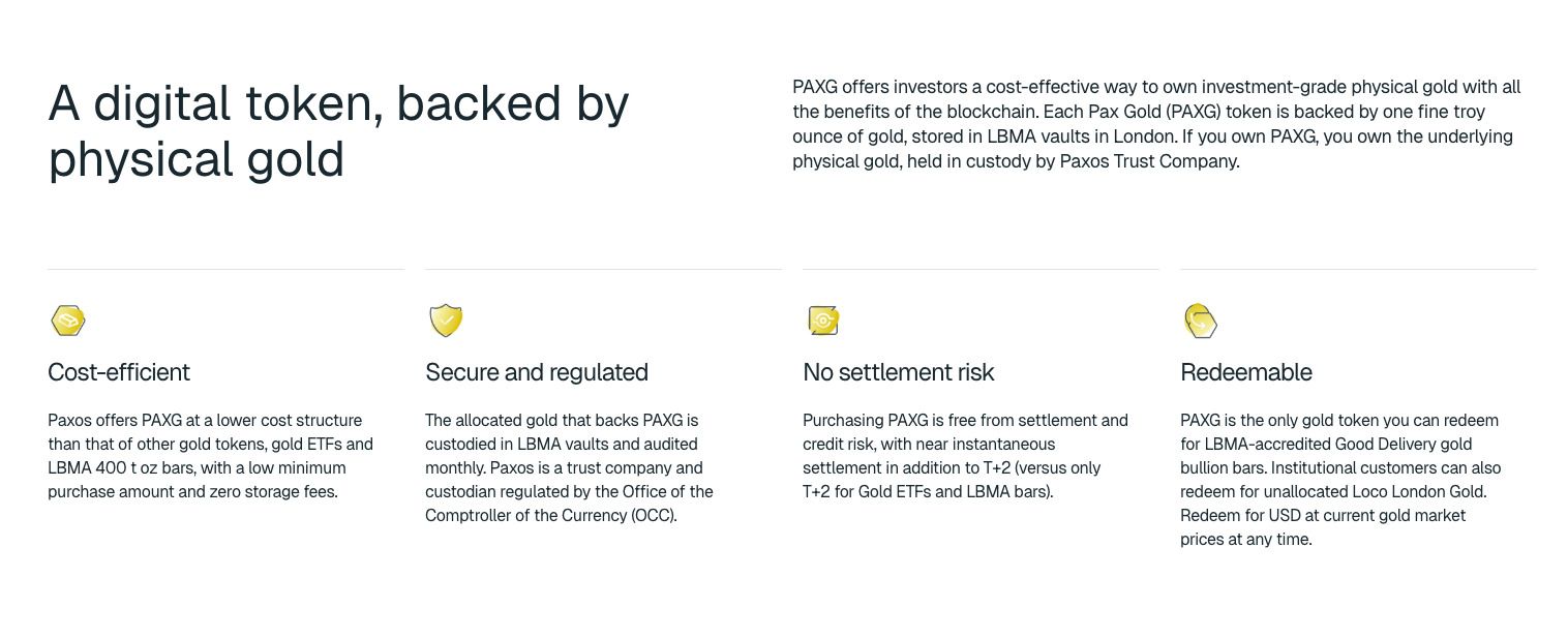 PAXG 的功能类似于商品支持的稳定资产,因为它与实物黄金而非法定货币挂钩,但最好将其描述为代币化黄金产品,而不是美元稳定币。