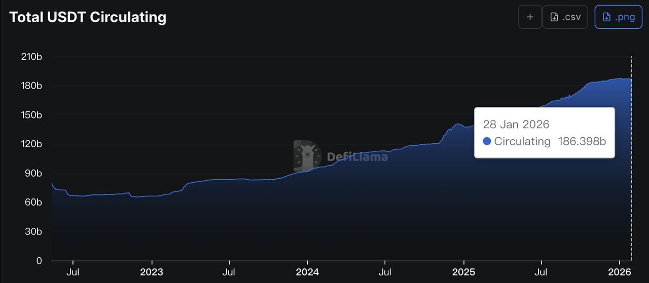 2026年 USDT 市值已超过 1860 亿美元 |数据源:DefiLlama
