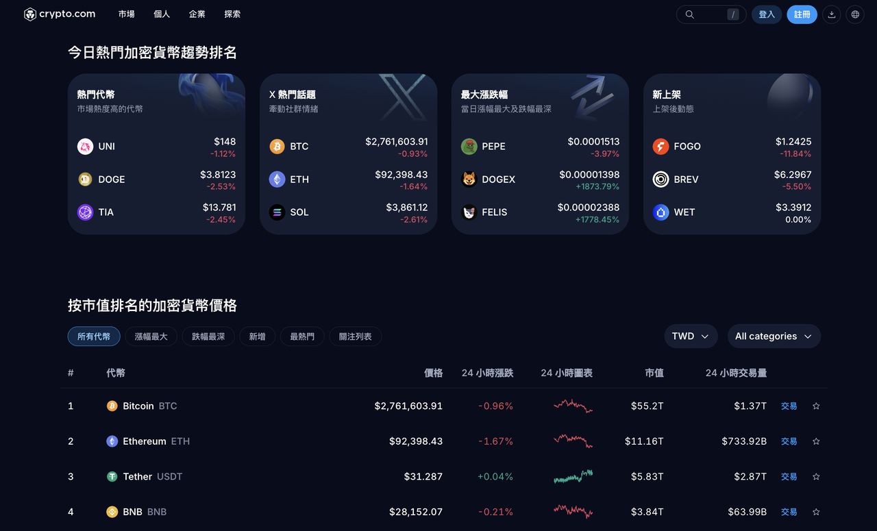 Crypto.com 成立于 2016 年,以行动应用程序为内核,将加密资产的交易、持有与实际消费集成于同一生态系中。对台湾用户而言,其特色不仅在于支持 USDT 与主流加密资产交易,也延伸至日常支付与卡片消费场景,使稳定币能更直接衔接现实生活使用。