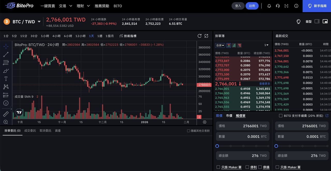 在 USDT 的购买与交易深度方面,BitoPro 提供 USDT/TWD 现货交易对,支持银行转帐与超商入金后直接下单。由于平台用户基数与整体成交量相对集中于本地市场,USDT/TWD 的流动性在一般金额范围内可满足日常需求,但在较大额交易时,实际成交价格可能受到市场深度影响,出现滑价或买卖价差扩大的情况。交易手续费大致落在 Maker 约 0.1%、Taker 约 0.2% 的区间,属于本地交易所常见水准;若采用超商入金,则需额外留意约 1% 左右的手续费成本。
