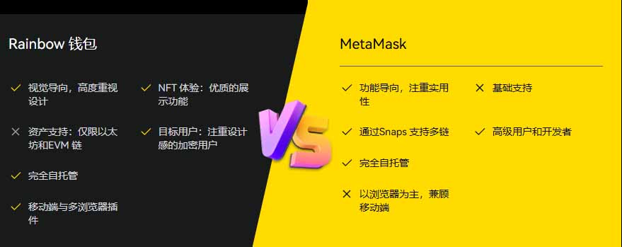 Rainbow 钱包vs. MetaMask:两者对比