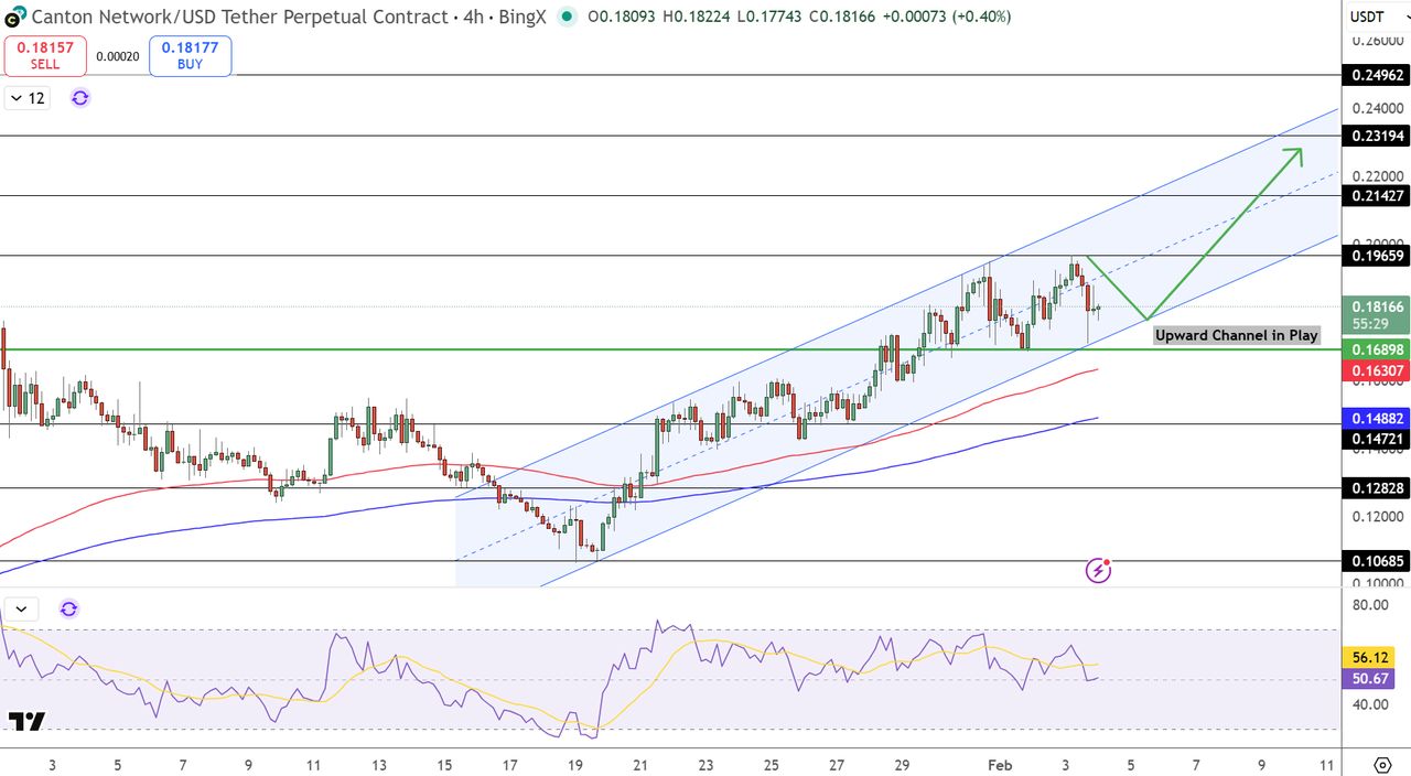 2026年2月4日,尽管更广泛的山寨币市场面临流动性危机,且每周有超过6亿美元的代币在整个行业中解锁,Canton Coin (CC) 却逆势而上,本周强劲上涨29%,达到0.1808美元。此次涨势得益于「原厂」机构资产的叙事,以及与Fireblocks达成的重要托管里程碑,使CC成为新年以来最稳定的前20 大资产之一。