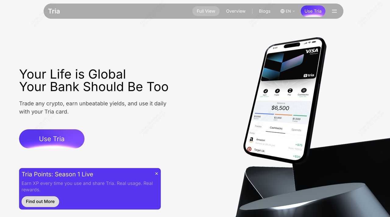 Tria (TRIA) 是一个开创性的自托管新银行,于2025年末推出,抓住了对可用链上金融日益增长的需求,创建了一个与现实世界支出、交易和跨区块链盈利相关的实用驱动代币生态系统。通过实现无缝、无手续费交易、全球Visa卡支付和可编程资金流,Tria打造了一个无国界金融层,用户和日益自主的AI代理可以将加密货币作为日常货币使用,无需桥接、托管人或复杂性。