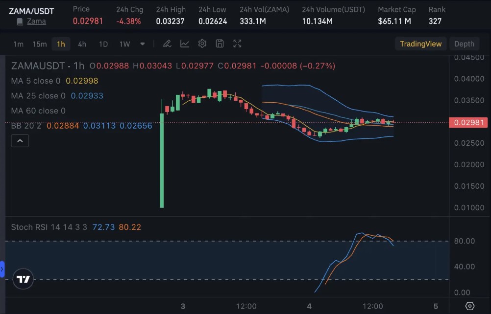 ZAMA 在Binance 和其他平台的上市为其带来了强大的知名度,但其价格仍然在约$0.029 之间波动。