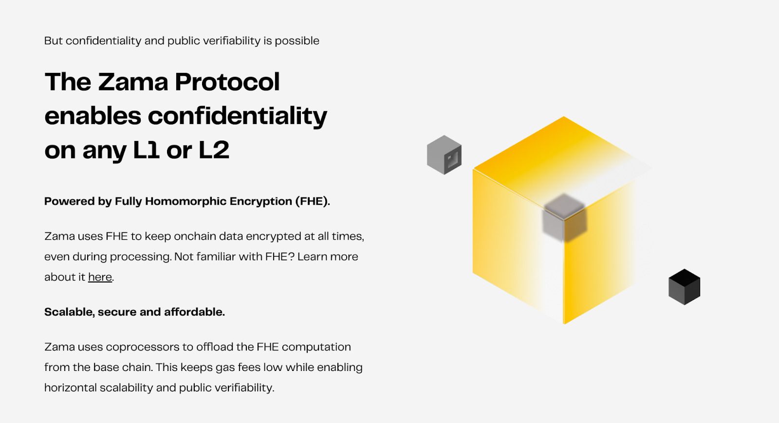 Zama 使用全同态加密提供机密协议,该协议能够在现有区块链之上实现加密智能合约和私有链上计算,这使其成为隐私基础设施的内核部分,而不是通用 L1 币。
