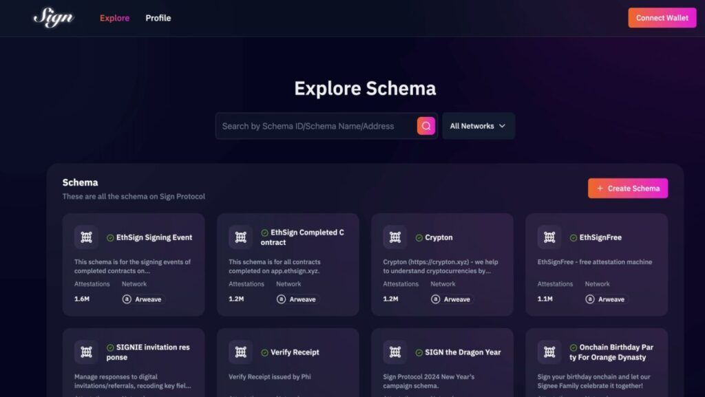 SIGN的模式注册作为认证的蓝图,允许用户创建标准化格式以进行验证。这个中心位置存储模式并提供创建新模式的指南,确保在生态系统中的兼容性和组合性。