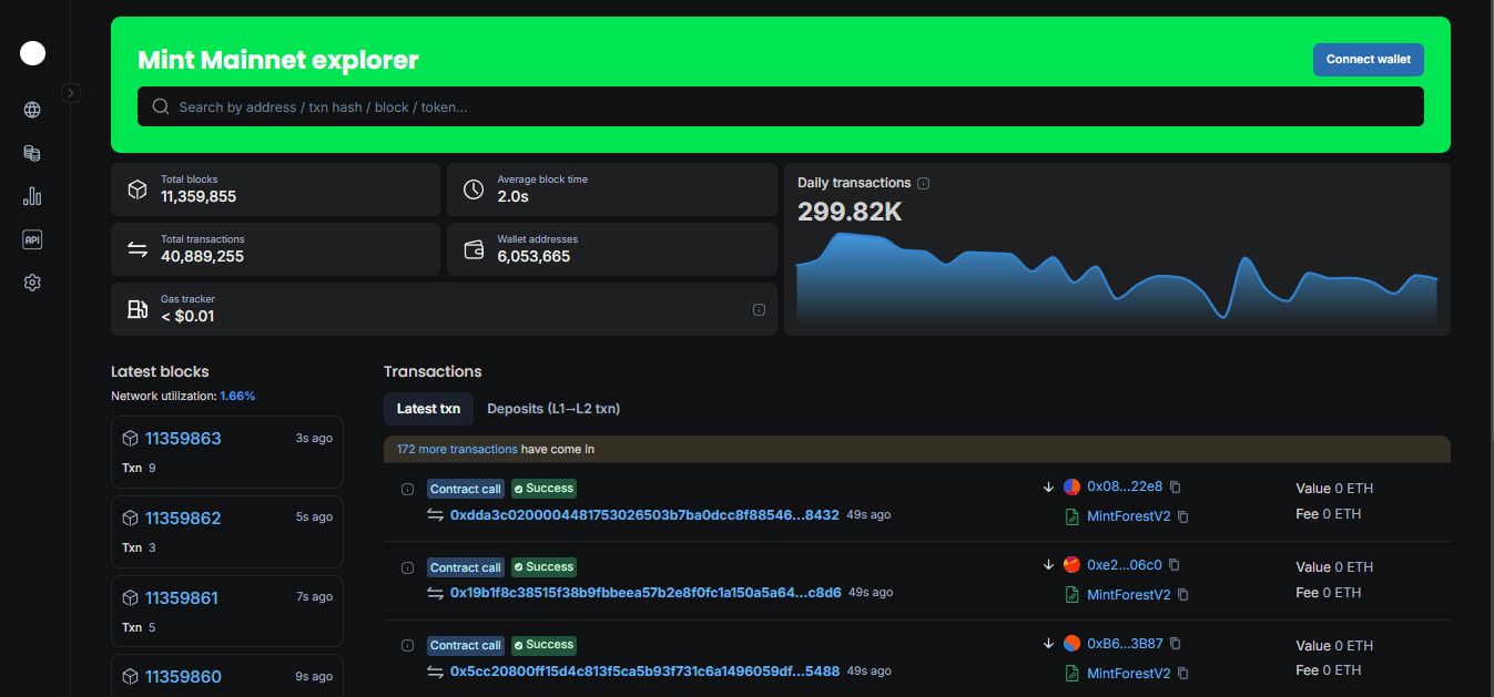 Mint 区块链提供多个区块浏览器,让用户和开发者能够轻松查看网络活动信息。通过浏览器,用户可以查看: