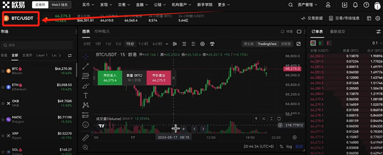 同样选择“BTC/USDT”的交易对。