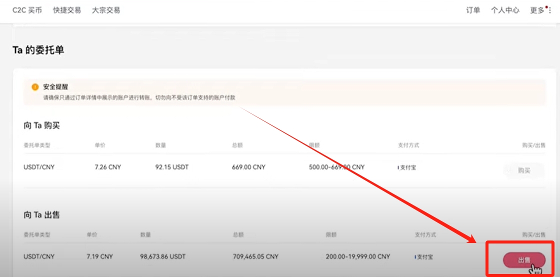 不同的是我们在上方选择【出售】,选择要出售的币种也是USDT。输入你要出售的金额。再选择一下你的收款方式。它同样有三种支付方式,分别是银行卡、支付宝和微信支付。