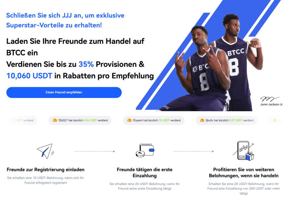 BTCC 不仅支付一次费用,而且永久分享您推荐的朋友实际支付的交易费用。