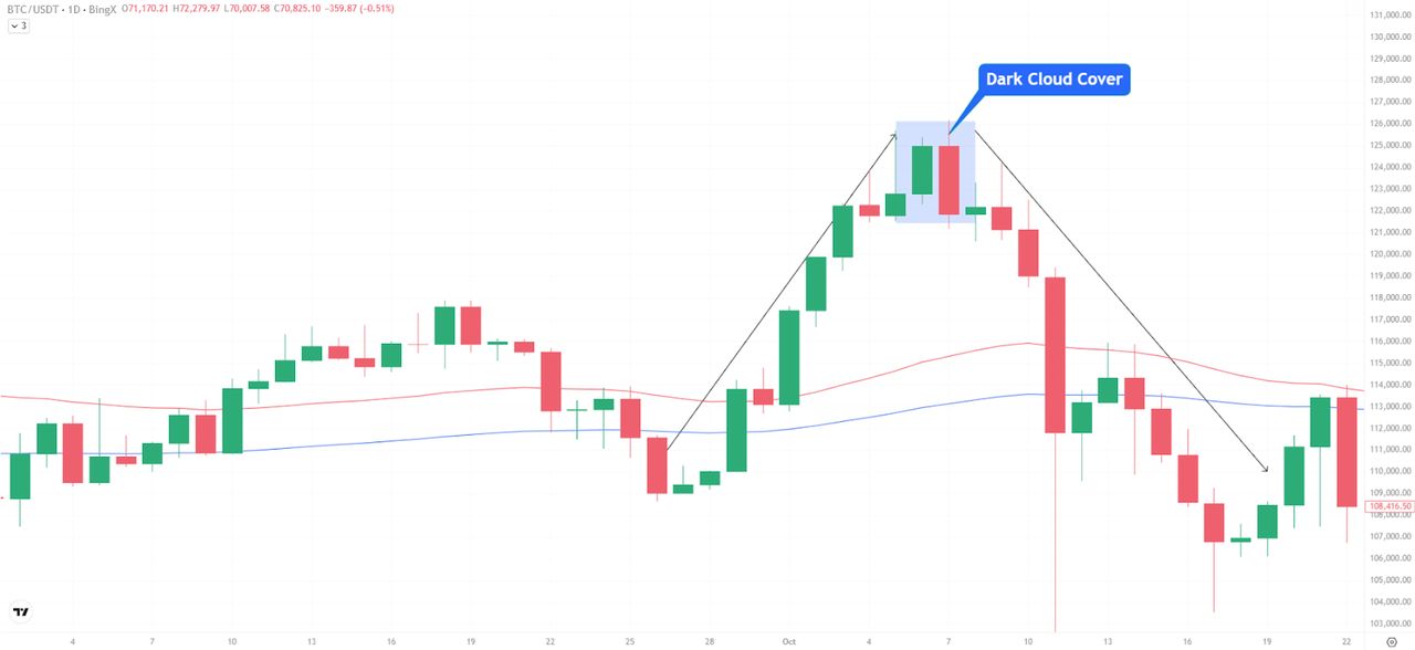 在快速变动的加密货币市场中,交易者将乌云盖顶用作风险管理信号。它有助于识别收紧止损、减少多头暴险或准备潜在回调的时机,而不是在接近局部高点时追价。