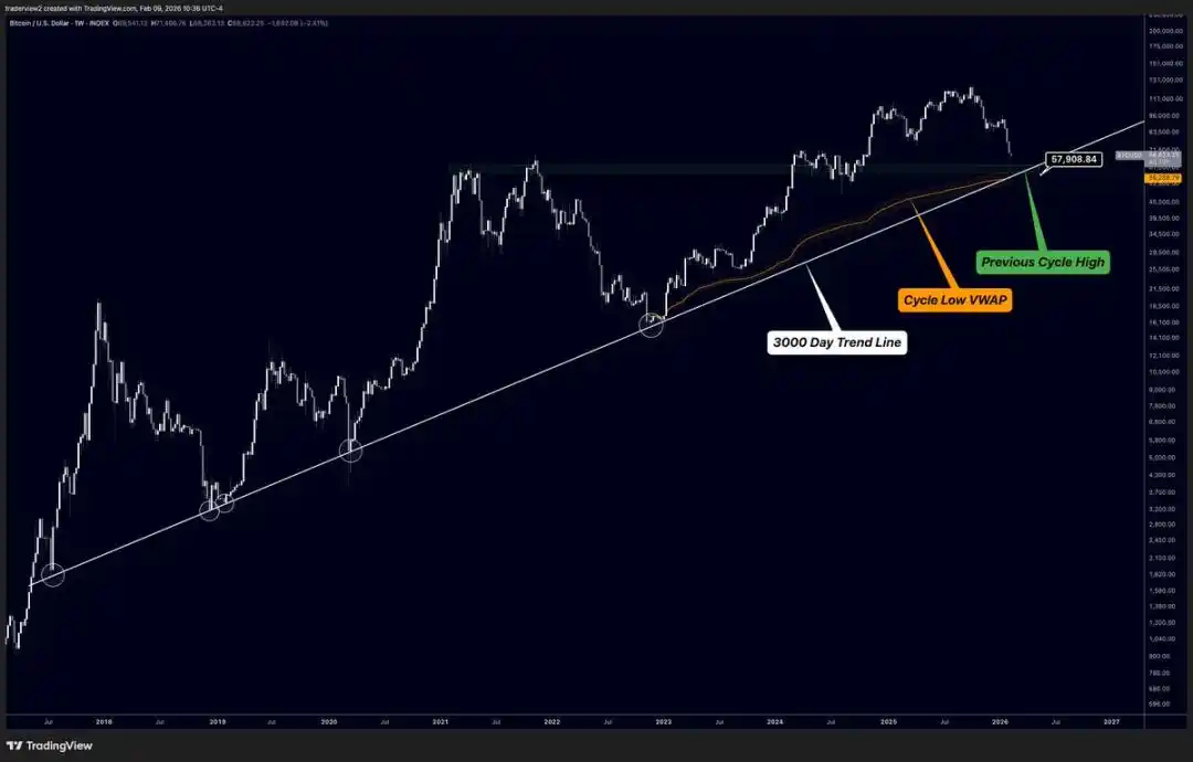 · 上一轮周期历史高点(6.9 万美元)的支撑延伸