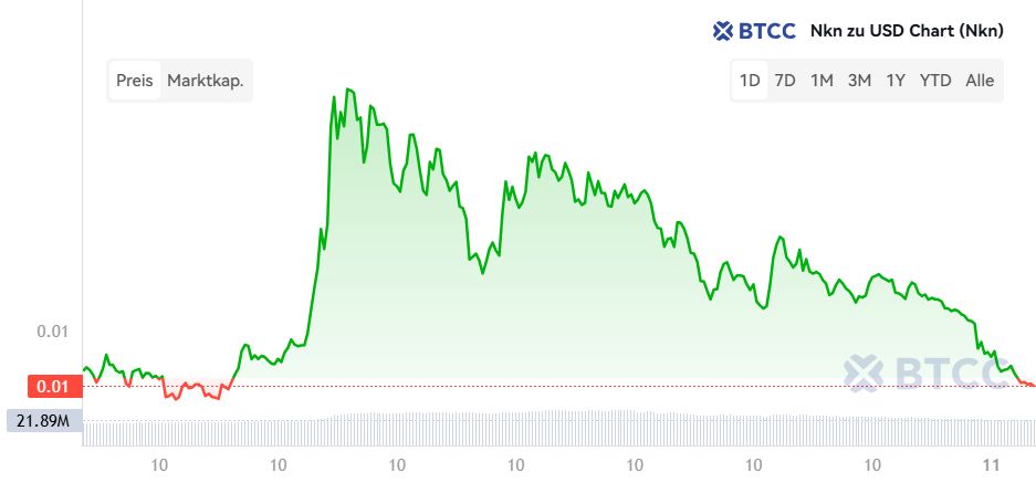 就在三天前,NKN 的价格跌至历史新低,约为 0.0045 美元。几乎无人问津,交易量惨淡,关注度也极低。然而,市场随后急转直下:24 小时内,价格飙升超过 140%。自此,NKN 重新出现在人们的视野中。