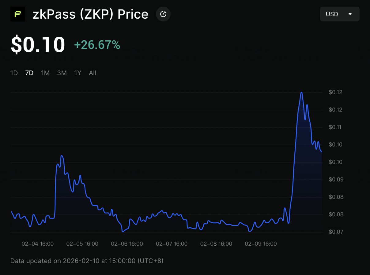 截至2026 年2 月10 日,ZKP 代币已飙升超过30%,受到激进现货买盘和一系列高影响力生态系统发展的推动。这一走势反映了市场对zkPass 和更广泛的zkTLS 叙述重新关注,几个短期催化剂促成了突破。