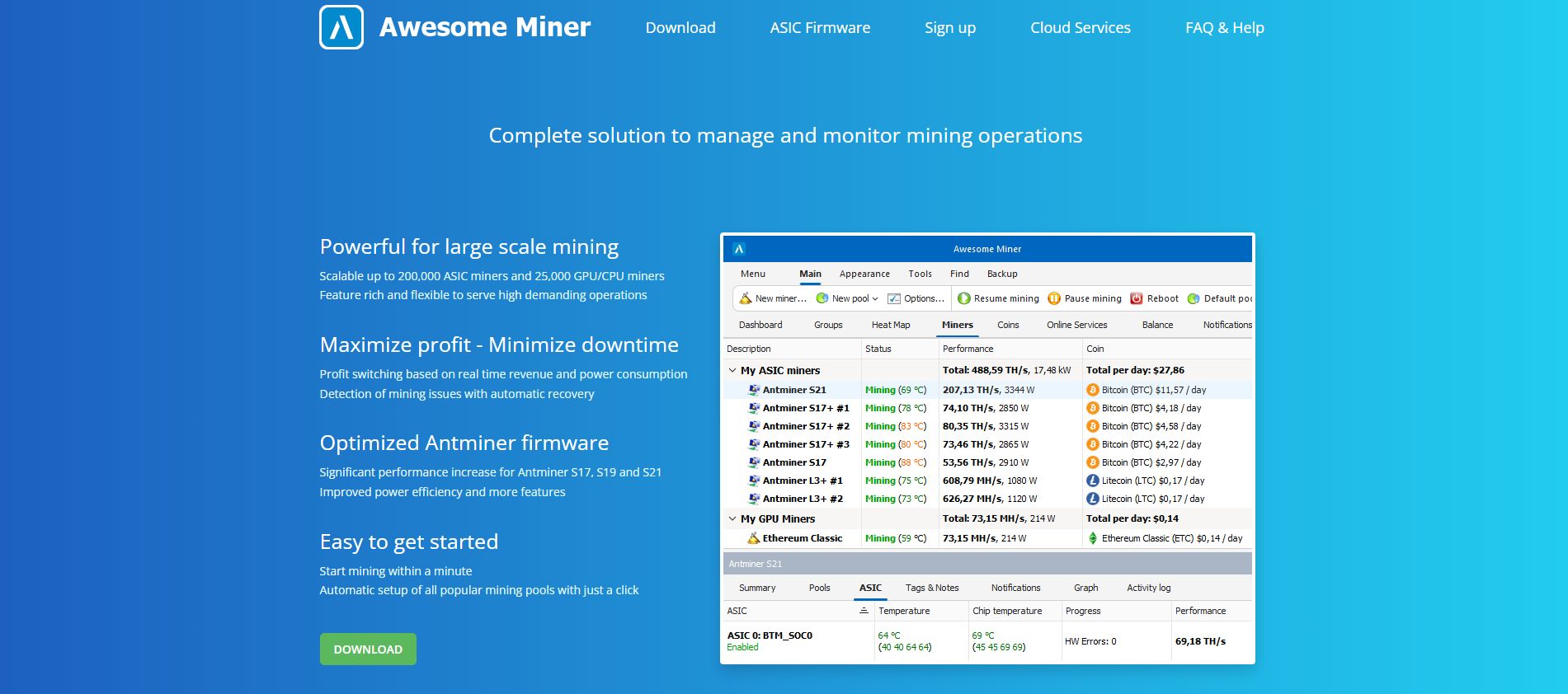 如果您管理多台矿机或运营大规模挖矿业务,Awesome Miner 是实现集中控制和高效挖矿的理想之选。它专为可扩展性而设计,允许您通过单一控制面板管理数千台设备,是业余爱好者和专业矿工的理想之选。其直观的界面确保了易用性,而其高级功能则满足了经验丰富的用户的需求。