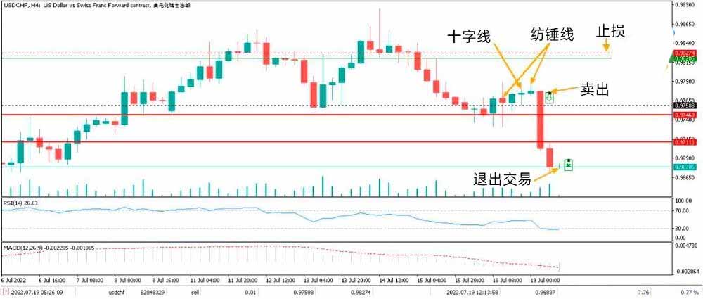从图表中可以看出,我们在此水平开仓进行 0.01 手的空头交易。将止损单设在 0.9827。由于这是短期日内交易,因此未设置止盈单,手动平仓获利。
