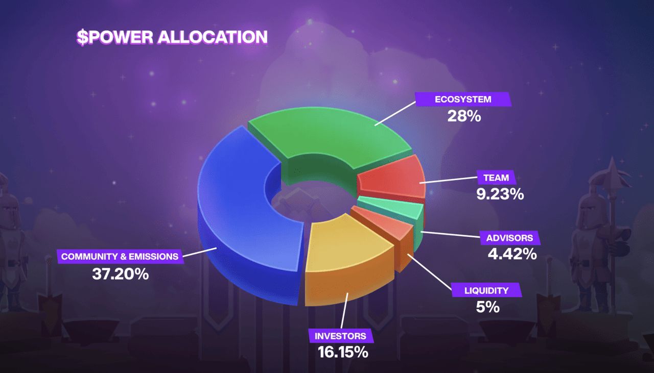 $POWER 的代币经济学旨在协调开发者、玩家和投资者的利益。总供应量上限为1,000,000,000(10亿)代币。