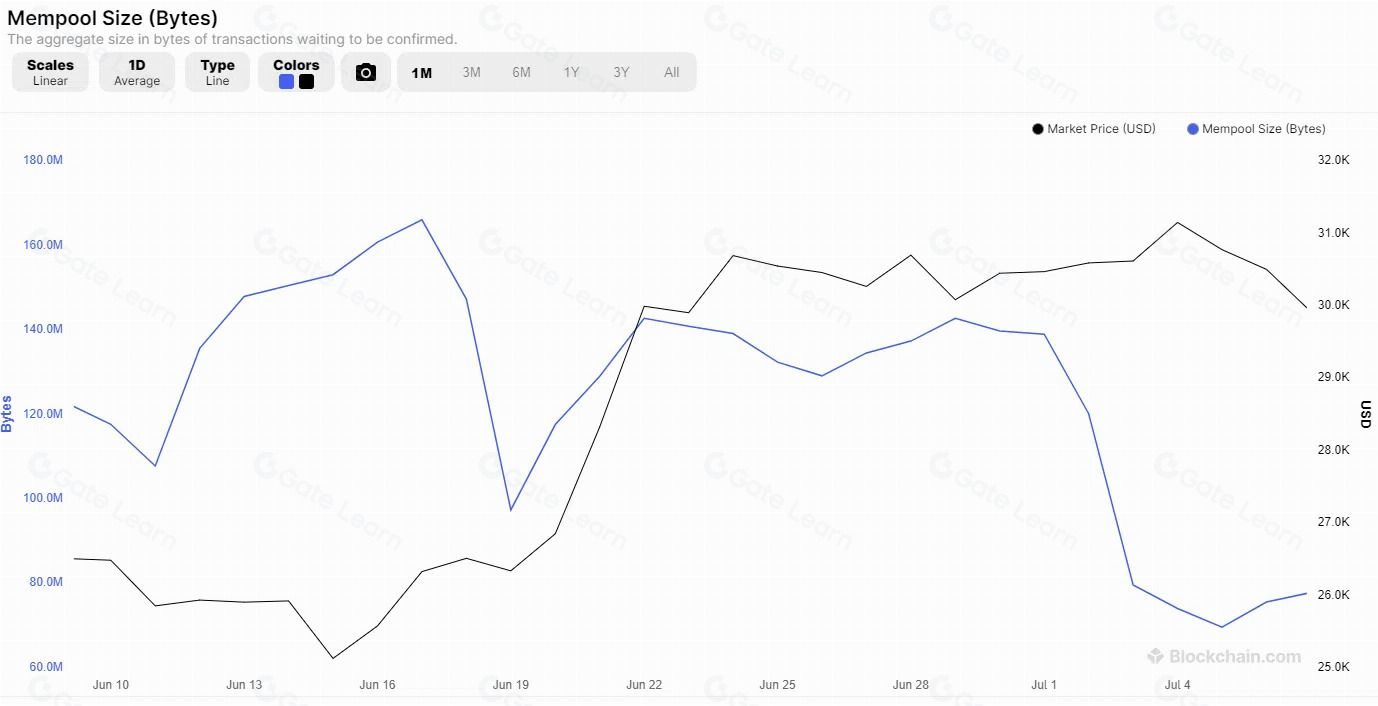 添加到内存池的每笔交易都是一条不超过几千字节 (kb) 的数据。构成交易的所有字节的总和就是内存池的大小。内存池越大,表明有大量交易等待确认。这也可能意味着网络流量的激增。
