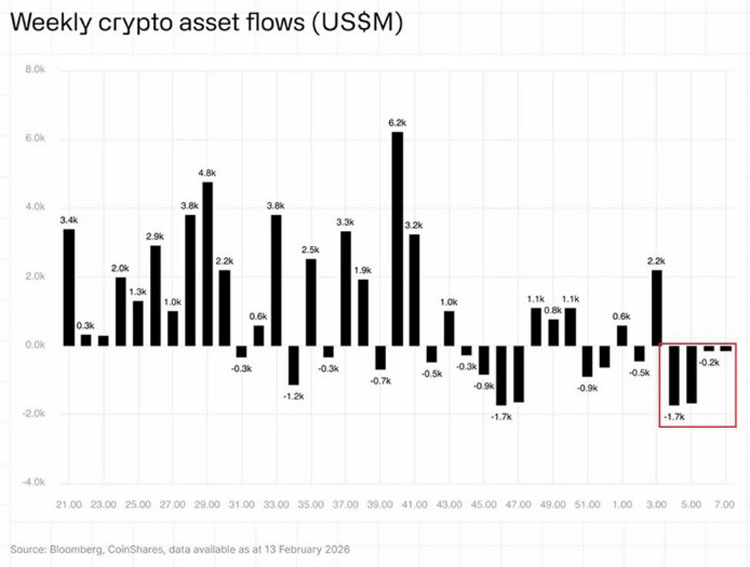 在当天的一条X帖子中,科贝西指出,上周加密货币基金出现了1.73亿美元的资金外流,这是它们连续第四周表现不佳。