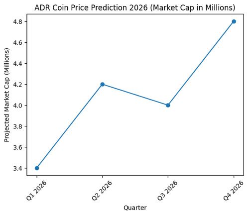 美国美元储备 ADR 币的价格预测显示,按正常市场条件,2026 年的潜在交易范围为 350 万至 500 万的市值。在一个看涨的情况下,如果强劲的交易量和动能回归,2026 年 ADR 币的价格可能会超过 600 万。