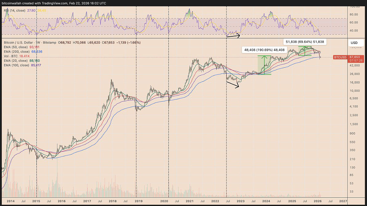 BTC/USD周线价格图表。来源:TradingView