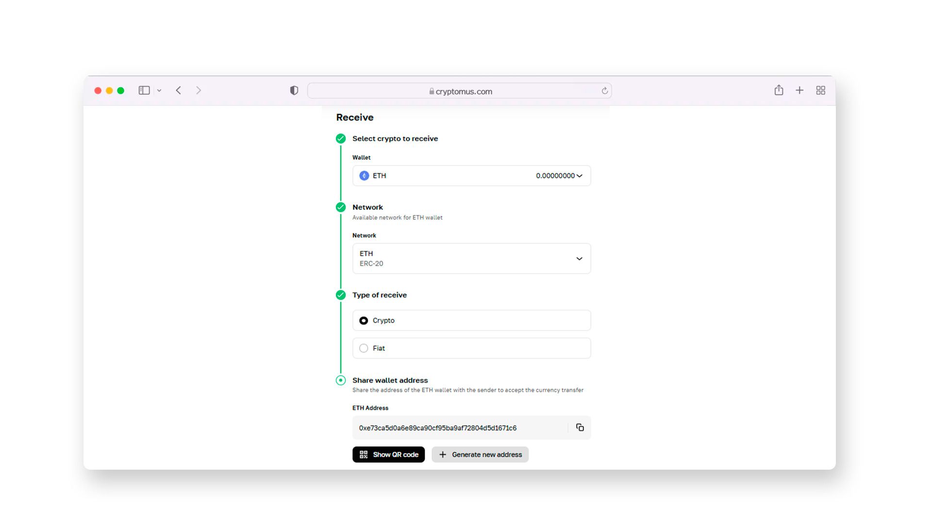 第四步:接收和分享您的以太坊钱包地址