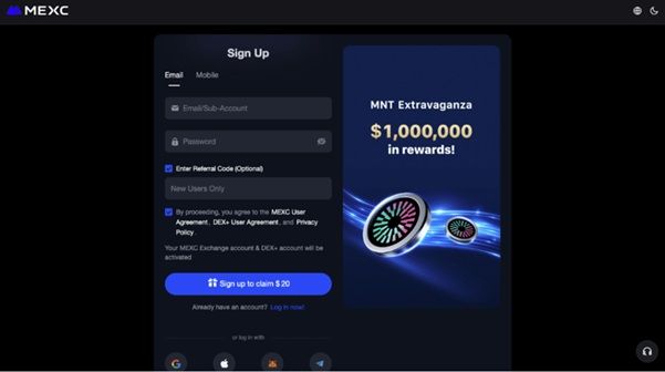 现在,让我们看看如何领取加密货币红利代码。为此,我们以 MEXC 为例:
