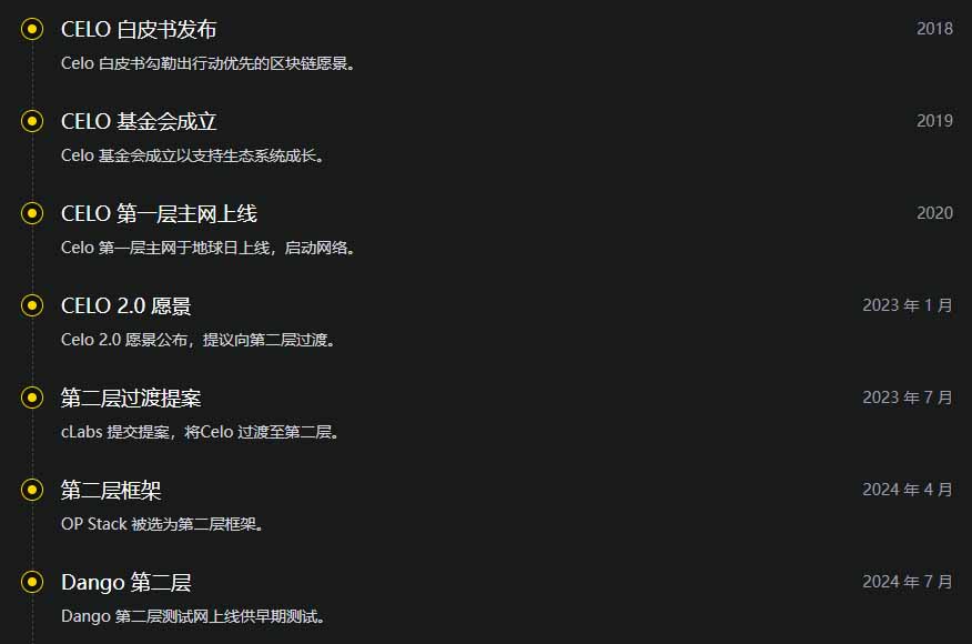 - 2024 年7 月:Dango 测试网上线,让开发者首次实际体验Celo 作为L2 的运作。