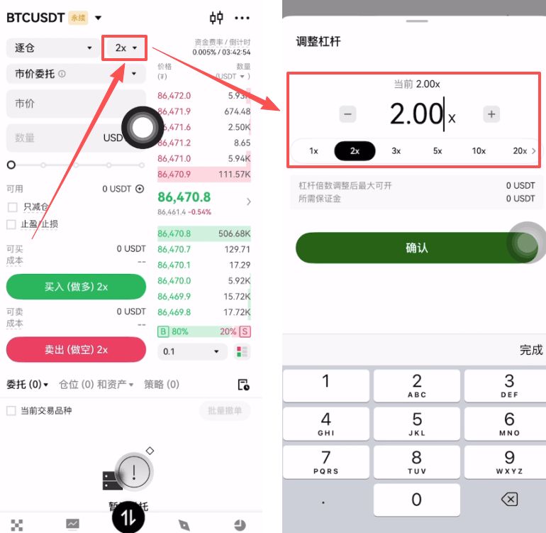 旁边的2X就是杠杆,最高是可以开到100倍杠杆的,我们一般都是开到2-3倍,这里我就开2倍。