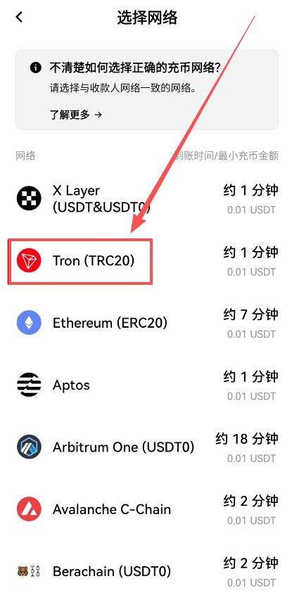 这里需要我们选择它的网络,我们一般要选择的就是TRC20网络,也就是TRON。