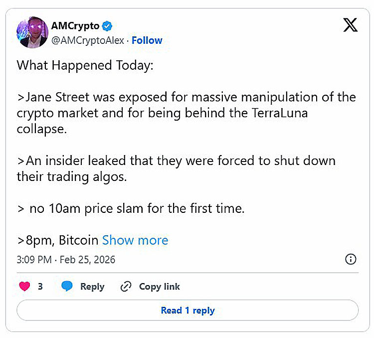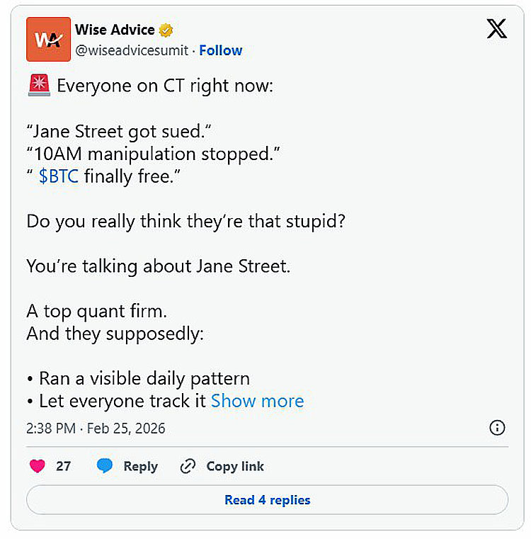 比特币爱好者热议Jane Street的‘上午10点价格暴跌’
