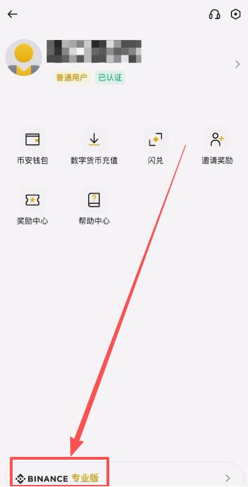 最下方有一个币安专业版的按钮,我们点击。