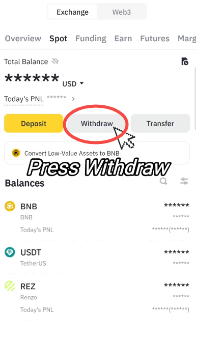 5.复制好地址后,打开要提现的平台app,以Binance app为例,打开Binance app,选择现货账户,点击提现。