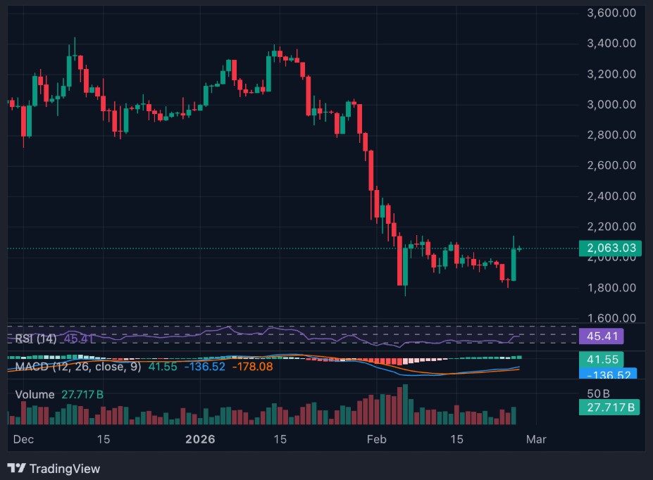 Ethereum 的价格回升至2,000 美元以上标志着一个重要的心理里程碑。动能指标正在稳定,短期情绪有所改善。