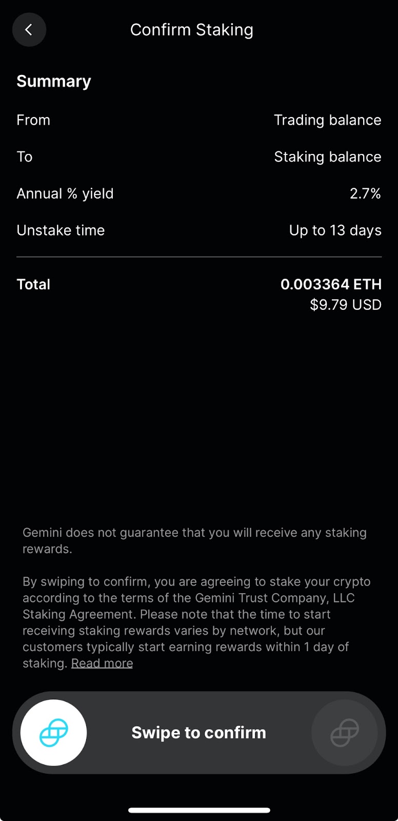 加密货币具有波动性并且受价格变化的影响。存在投资风险,交易者需要在投资硬币之前判断自己的风险承受能力。 Gemini Earn 有返还资金的义务。在他们的贷款协议的条款和条件中提到了这一点。