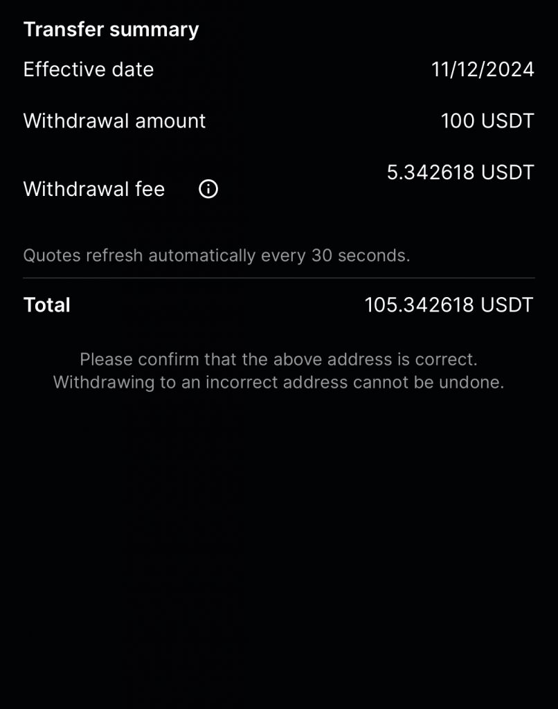 实测提领100U 到币安,大约需要5 分钟,手续费是5.34U。