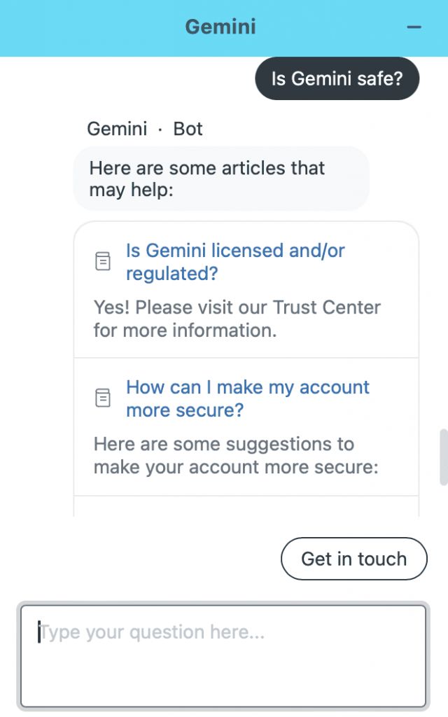 我觉得Gemini 的客服机器人有点笨, BitMart 的机器人虽然也是拿文章回应,但至少会做一下文章总结。