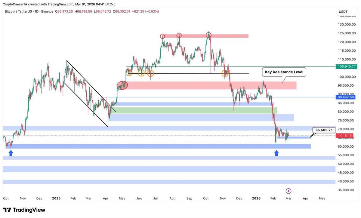 BTC/USDT日线图。来源:Crypto Caesar/X